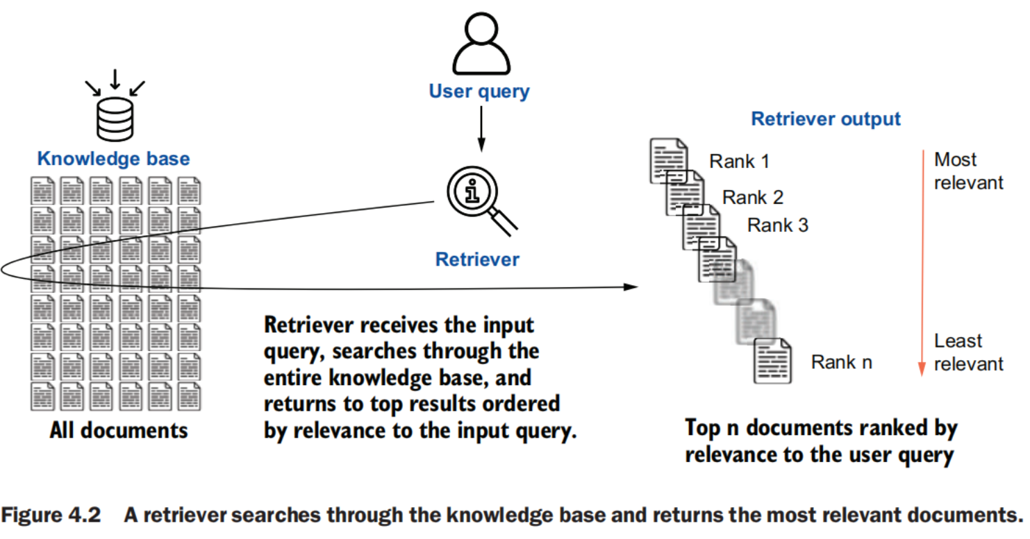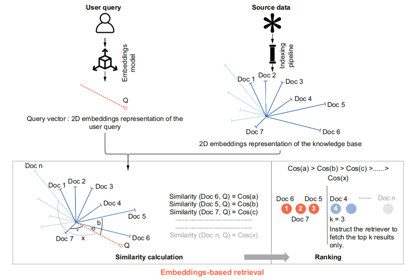 - Vector stores and databases as retrievers: Vector stores can act as the retrievers, taking away the responsibility from the developer to convert the query vector into embeddings by calculating similarity and ranking the results.