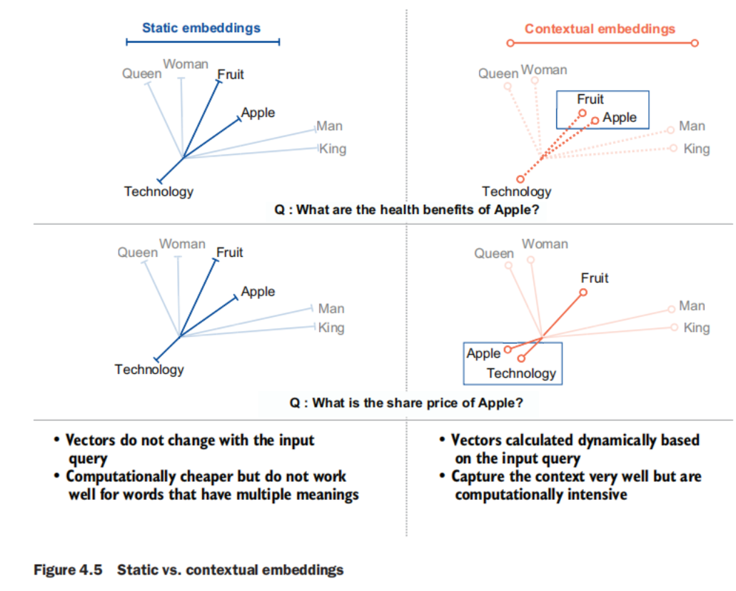 Generated by models such as BERT or OpenAI’s text embeddings, contextual embeddings produce high-dimensional, context-aware representations for queries and documents. These models, based on transformers, capture deep semantic meanings and relationships. For example, a query about “apple” will retrieve documents discussing apple the fruit, or Apple the technology company, depending on the input query. Contextual embeddings represent a significant advancement in IR, providing the context and understanding necessary for RAG tasks. Despite being computationally intensive, contextual embeddings are the most widely used retrievers in RAG.