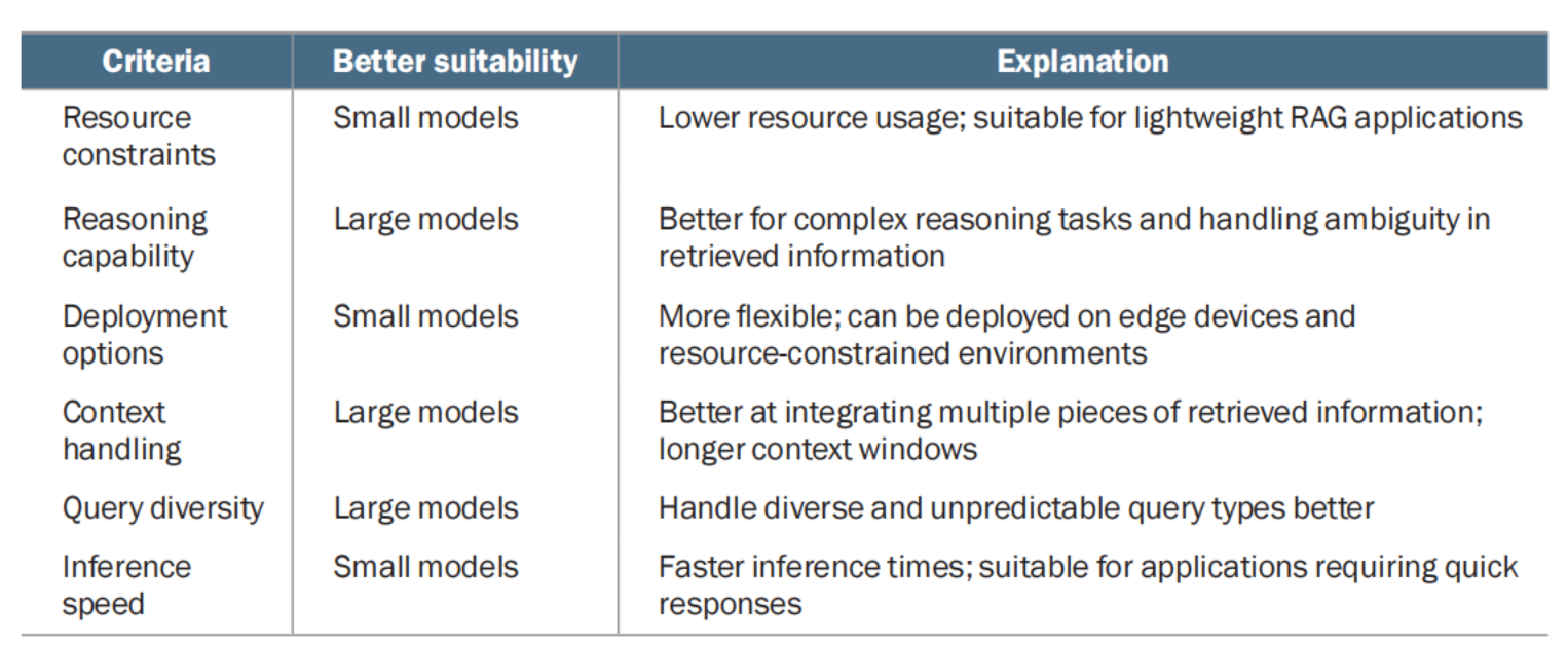 - Larger models come with superior reasoning, language understanding, and broader knowledge, and generate more coherent and contextually accurate responses but come with high computational and resource requirements. Smaller models allow faster inference, lower resource usage, and are easier to deploy on edge devices or resource-constrained environments but do not have the same language understanding abilities as large models.